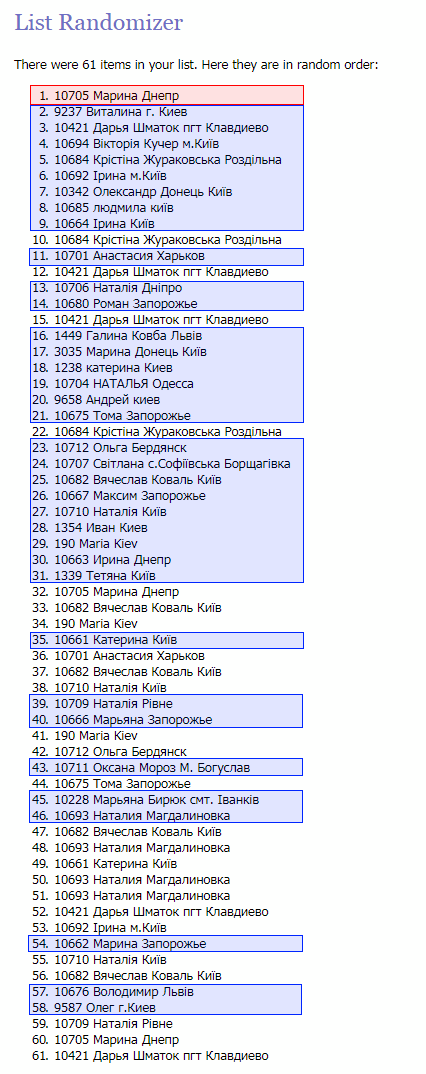 С помощью сервиса http://www.random.org случайным образом были определены владельцы подарков. Ими стали: