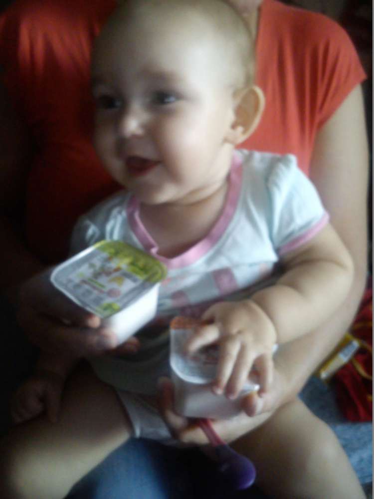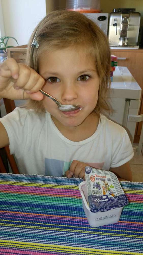 Євочка дуже радіє коли щодня їсть улюблені сирочки.